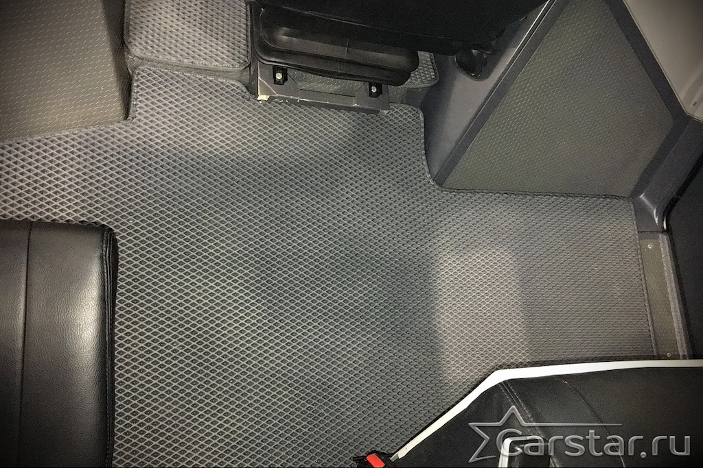 Толщина ковриков EVA составляет 10-12 мм. Глубина ячеек 7-8 мм. Такая толщина ковриков позволяет им служить довольно долго, не протираясь до 3 лет. А благодаря такой глубине ячеек коврик EVA площадью 1 кв.м. способен захватить около 3,5 л жидкости, сохраняя в чистоте вашу обувь и обивку салона.