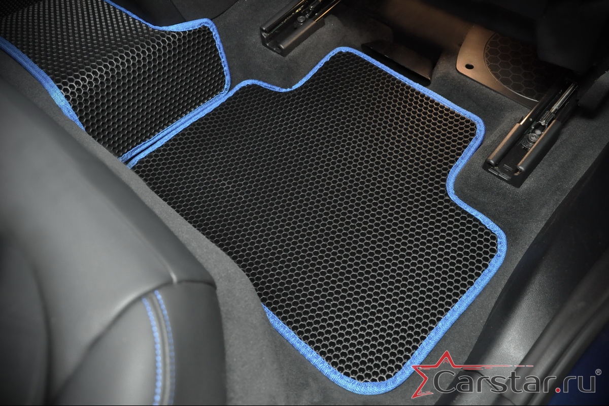 Автомобильные коврики EVA прекрасно подходят для всех существующих марок и моделей авто, здесь вы сможете заказать оптимальный аксессуар любого возможного цвета. По размерам они больше, чем стандартные резиновые коврики, поэтому покрывают максимальную площадь пола в салоне. А двойная система креплений (клипсы и липучки) позволяет надежно зафиксировать коврики в нужном месте.
