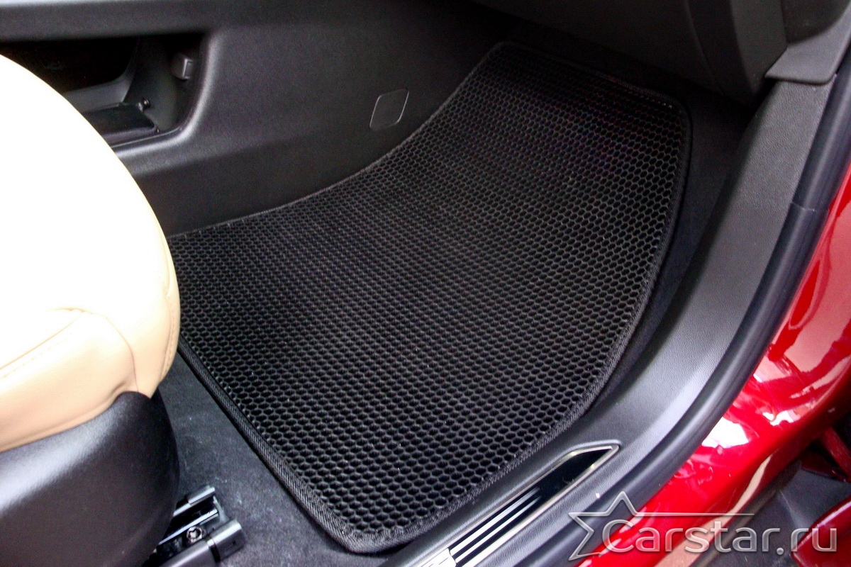 Автомобильные коврики EVA прекрасно подходят для всех существующих марок и моделей авто, здесь вы сможете заказать оптимальный аксессуар любого возможного цвета. По размерам они больше, чем стандартные резиновые коврики, поэтому покрывают максимальную площадь пола в салоне. А двойная система креплений (клипсы и липучки) позволяет надежно зафиксировать коврики в нужном месте.