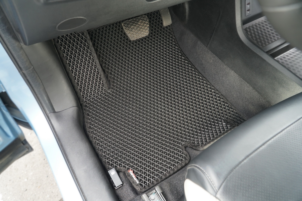 Толщина ковриков EVA составляет 10-12 мм. Глубина ячеек 7-8 мм. Такая толщина ковриков позволяет им служить довольно долго, не протираясь до 3 лет. А благодаря такой глубине ячеек коврик EVA площадью 1 кв.м. способен захватить около 3,5 л жидкости, сохраняя в чистоте вашу обувь и обивку салона.