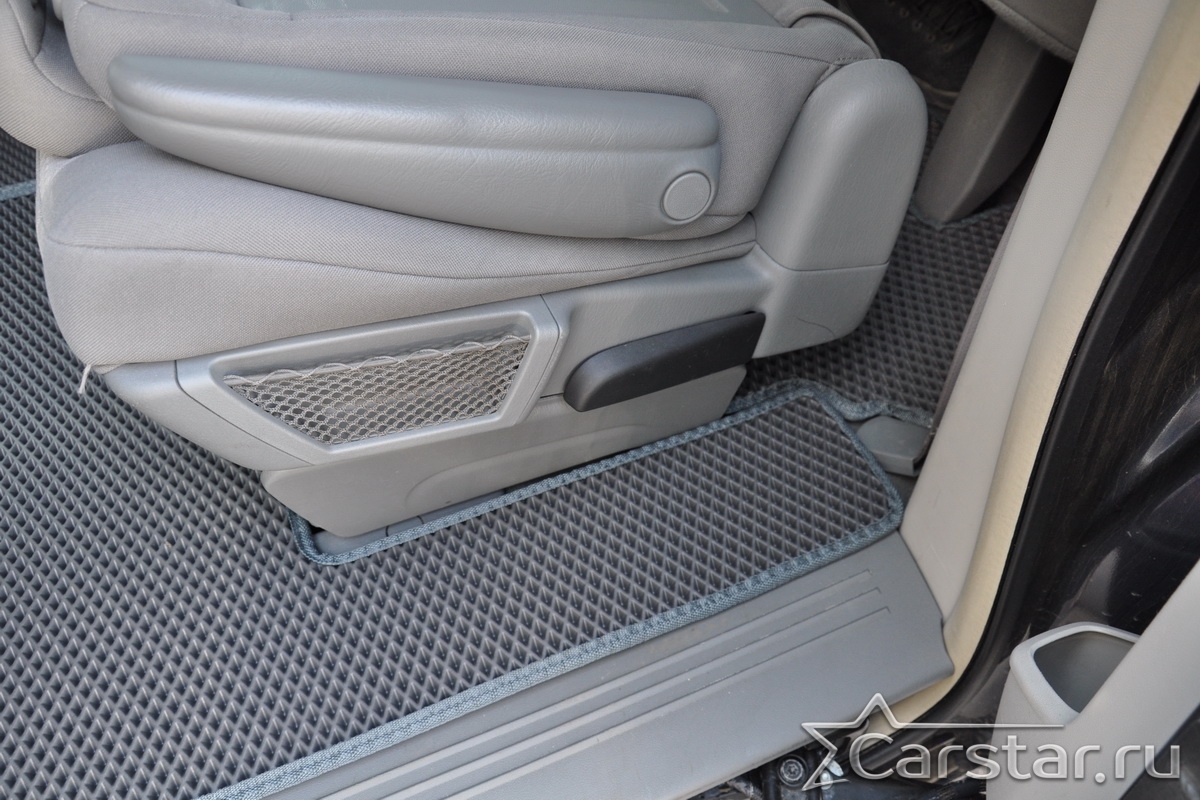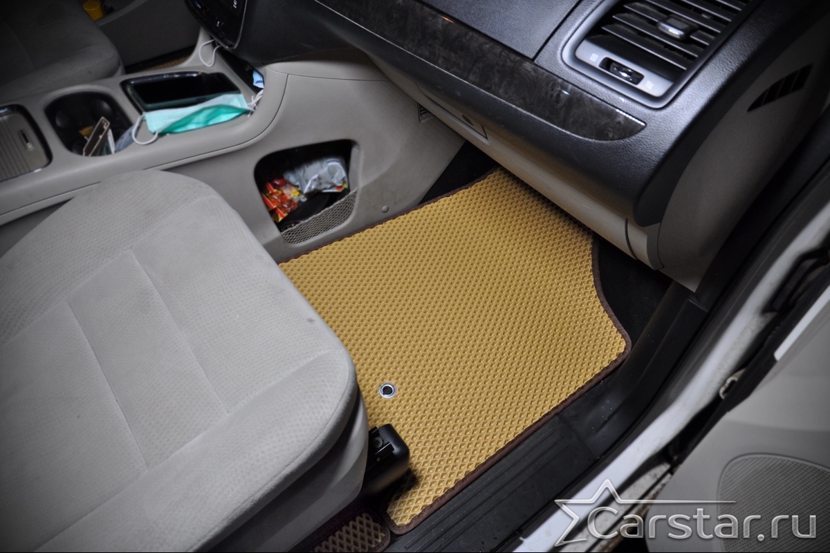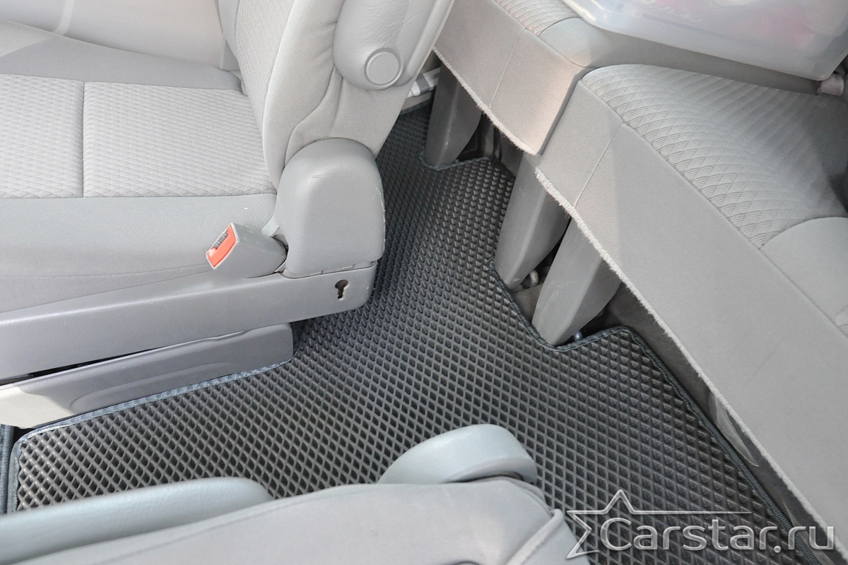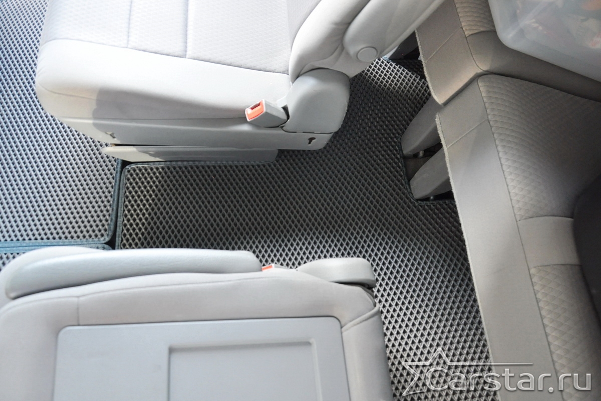 Автомобильные коврики EVA Chrysler Grand Voyager V (2008->) 2 ряд: кресла 1+1 не убираются в пол – это долговечные, удобные и универсальные аксессуары, которые помогут надежно защитить салон и багажник вашего авто от пыли, грязи и влаги в любое время года.