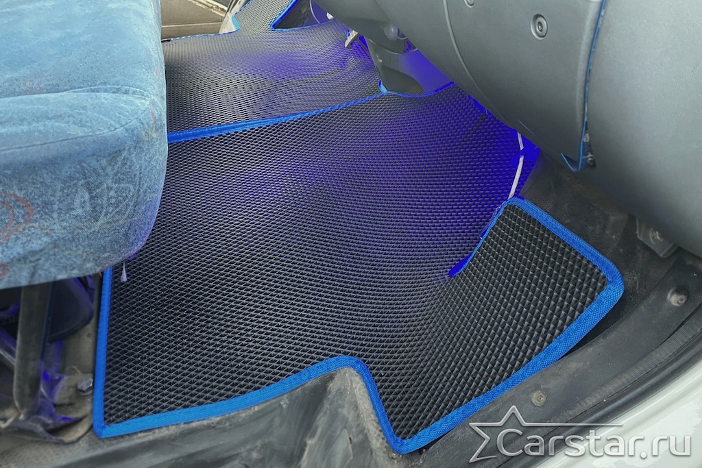 Толщина ковриков EVA составляет 10-12 мм. Глубина ячеек 7-8 мм. Такая толщина ковриков позволяет им служить довольно долго, не протираясь до 3 лет. А благодаря такой глубине ячеек коврик EVA площадью 1 кв.м. способен захватить около 3,5 л жидкости, сохраняя в чистоте вашу обувь и обивку салона.