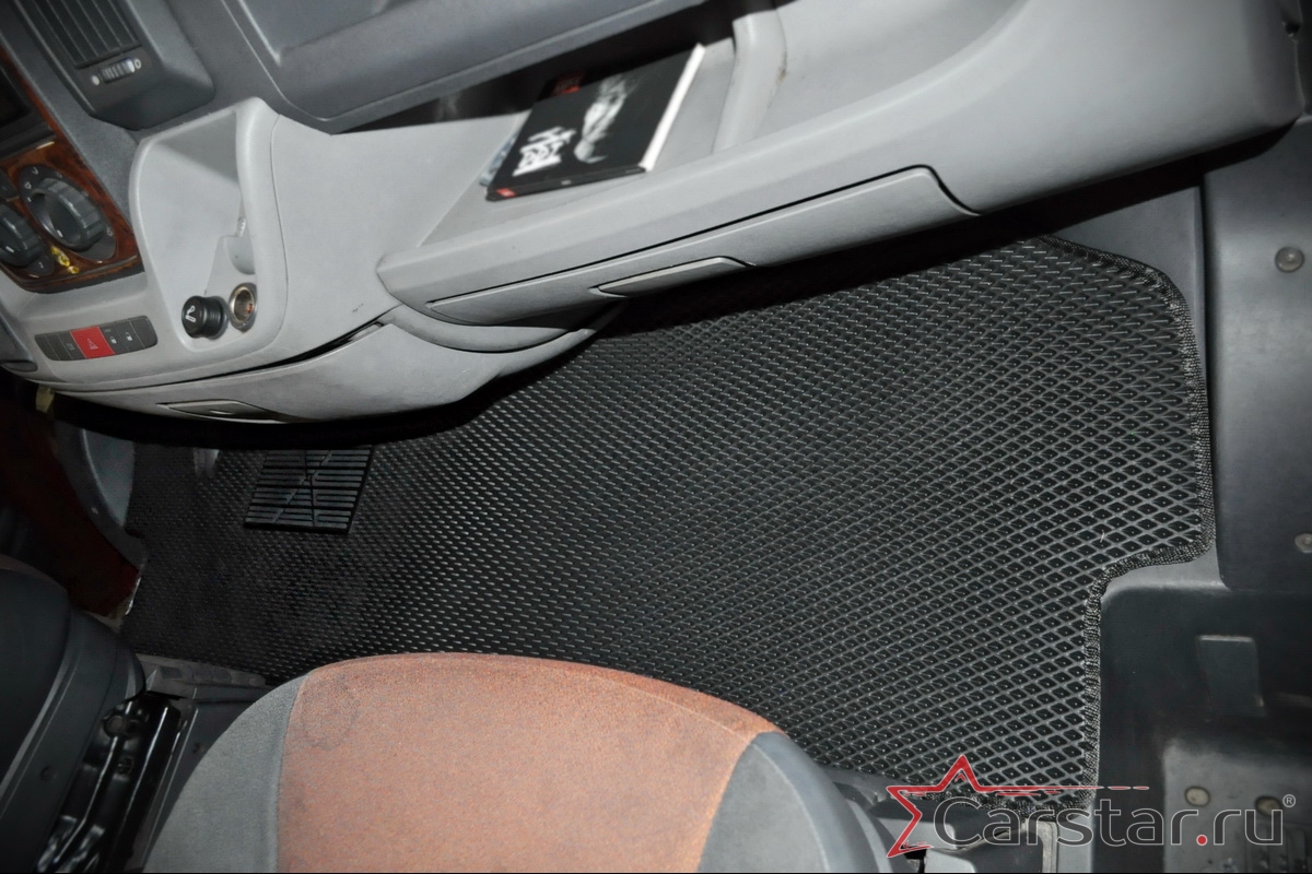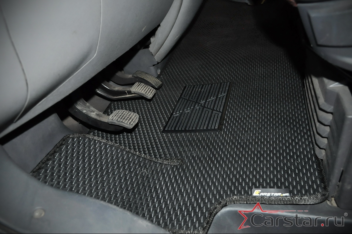 Толщина ковриков EVA составляет 10-12 мм. Глубина ячеек 7-8 мм. Такая толщина ковриков позволяет им служить довольно долго, не протираясь до 3 лет. А благодаря такой глубине ячеек коврик EVA площадью 1 кв.м. способен захватить около 3,5 л жидкости, сохраняя в чистоте вашу обувь и обивку салона.