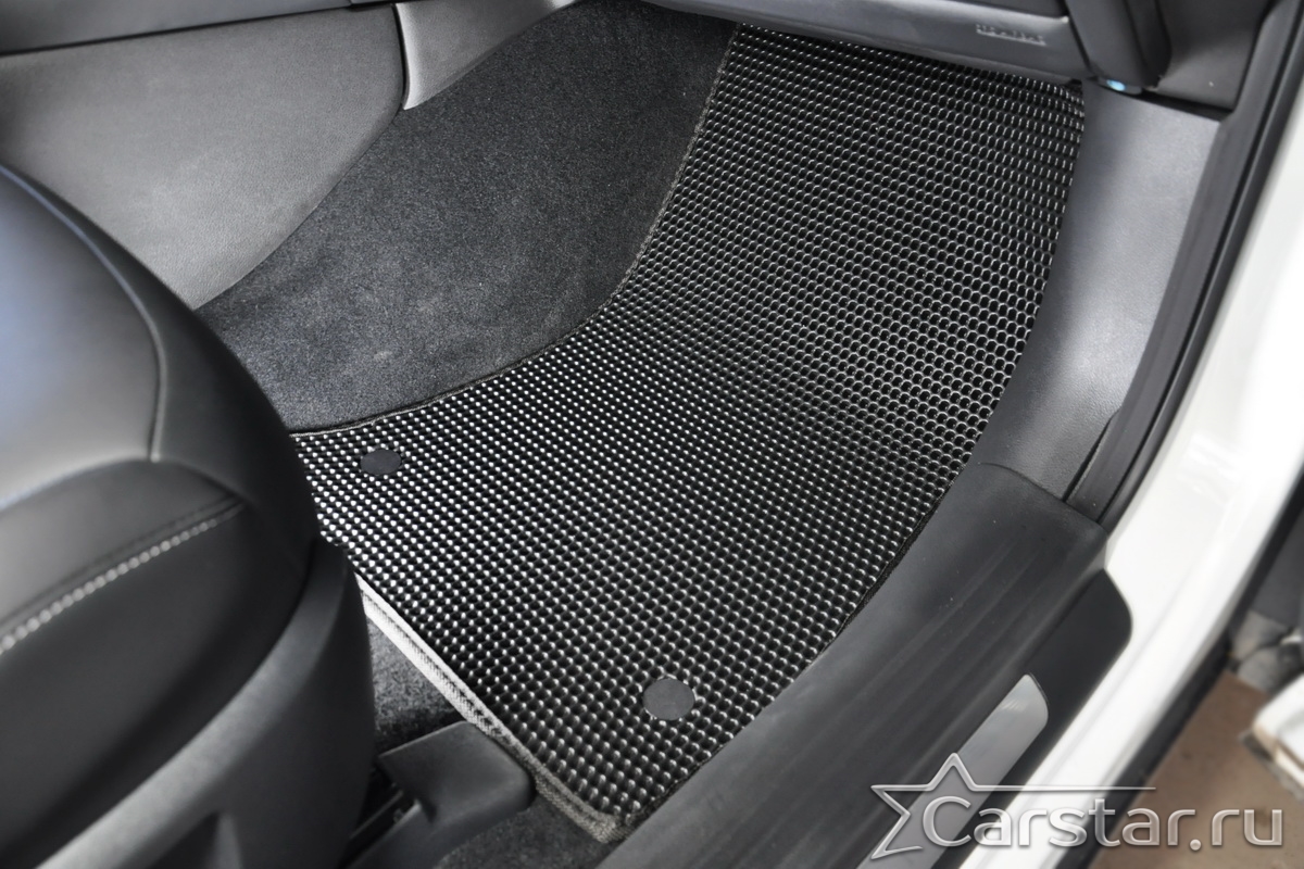 Коврики EVA надёжно крепятся с помощью оригинальных систем фиксации. Благодаря клипсам и липучке коврики защищены от смещений, что обеспечивает комфорт и безопасность вождения. Максимальное удобство также достигается точными, улучшенными лекалами для каждого автомобиля.