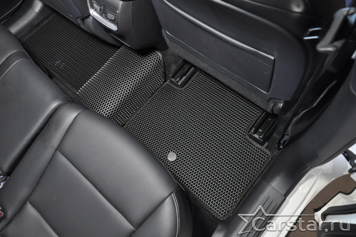Толщина ковриков EVA составляет 10-12 мм. Глубина ячеек 7-8 мм. Такая толщина ковриков позволяет им служить довольно долго, не протираясь до 3 лет. А благодаря такой глубине ячеек коврик EVA площадью 1 кв.м. способен захватить около 3,5 л жидкости, сохраняя в чистоте вашу обувь и обивку салона.