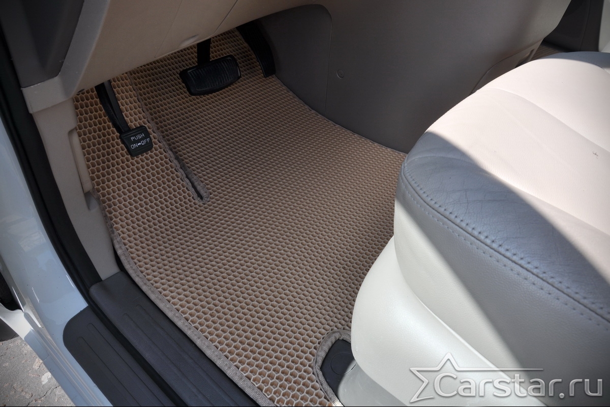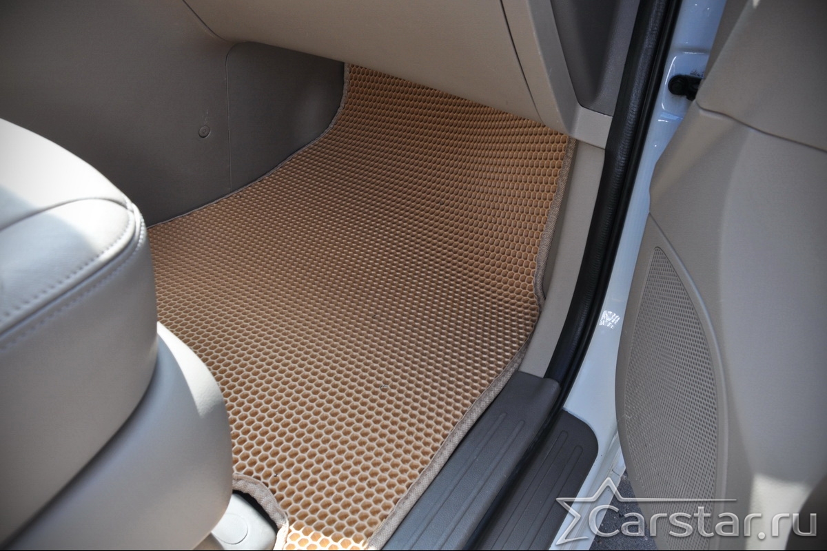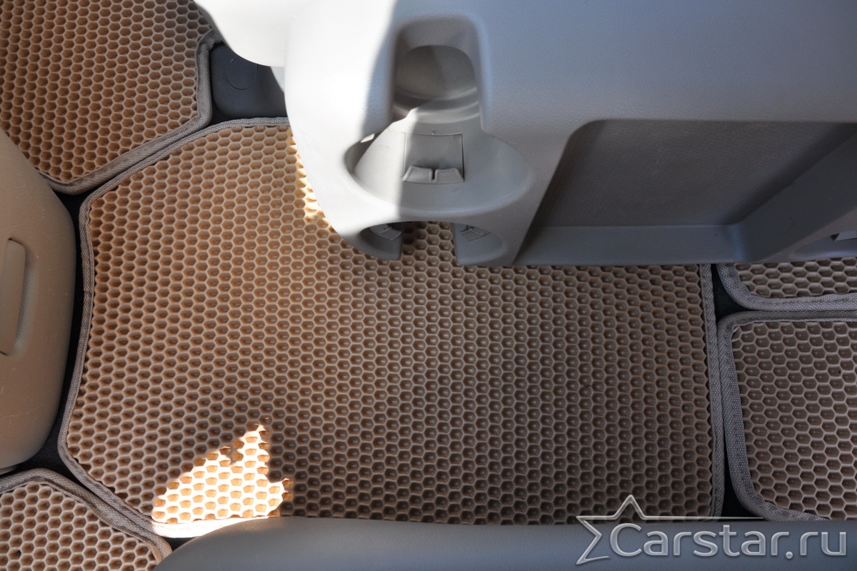 Толщина ковриков EVA составляет 10-12 мм. Глубина ячеек 7-8 мм. Такая толщина ковриков позволяет им служить довольно долго, не протираясь до 3 лет. А благодаря такой глубине ячеек коврик EVA площадью 1 кв.м. способен захватить около 3,5 л жидкости, сохраняя в чистоте вашу обувь и обивку салона.