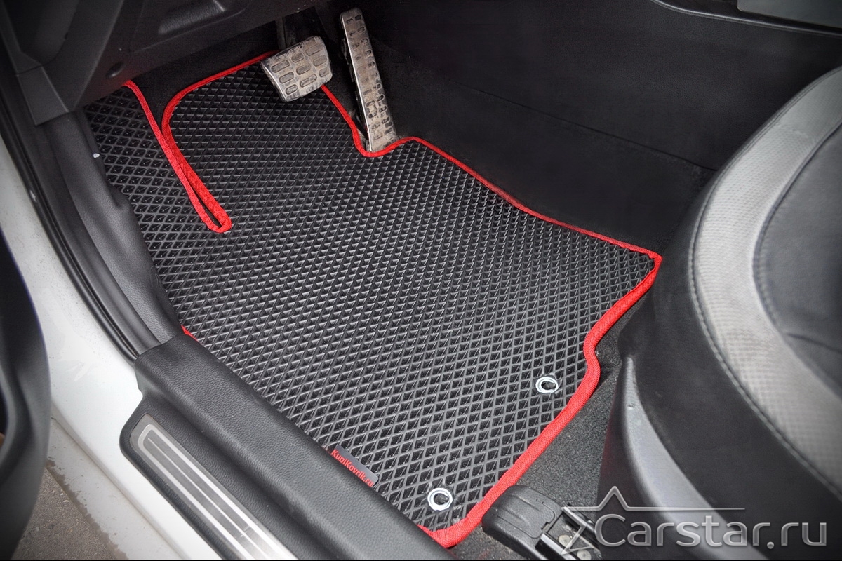 Коврики EVA надёжно крепятся с помощью оригинальных систем фиксации. Благодаря клипсам и липучке коврики защищены от смещений, что обеспечивает комфорт и безопасность вождения. Максимальное удобство также достигается точными, улучшенными лекалами для каждого автомобиля.