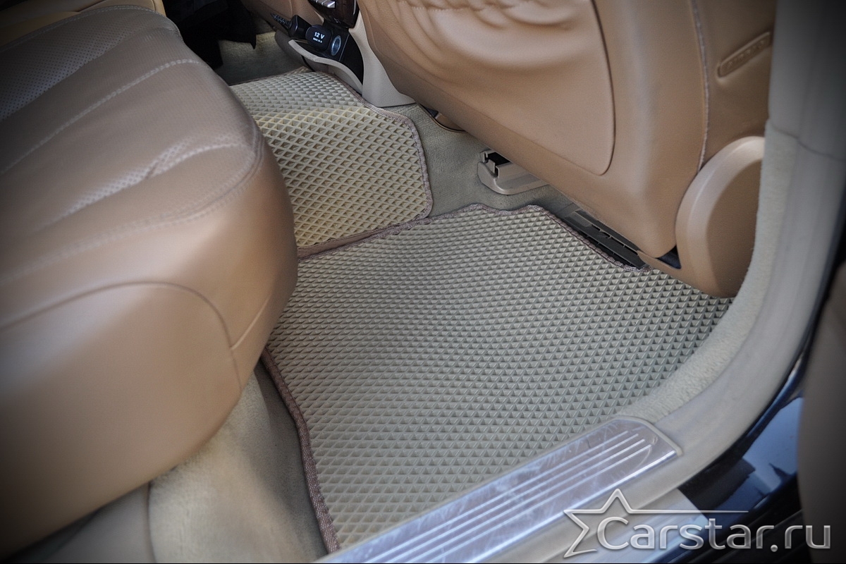 Толщина ковриков EVA составляет 10-12 мм. Глубина ячеек 7-8 мм. Такая толщина ковриков позволяет им служить довольно долго, не протираясь до 3 лет. А благодаря такой глубине ячеек коврик EVA площадью 1 кв.м. способен захватить около 3,5 л жидкости, сохраняя в чистоте вашу обувь и обивку салона.