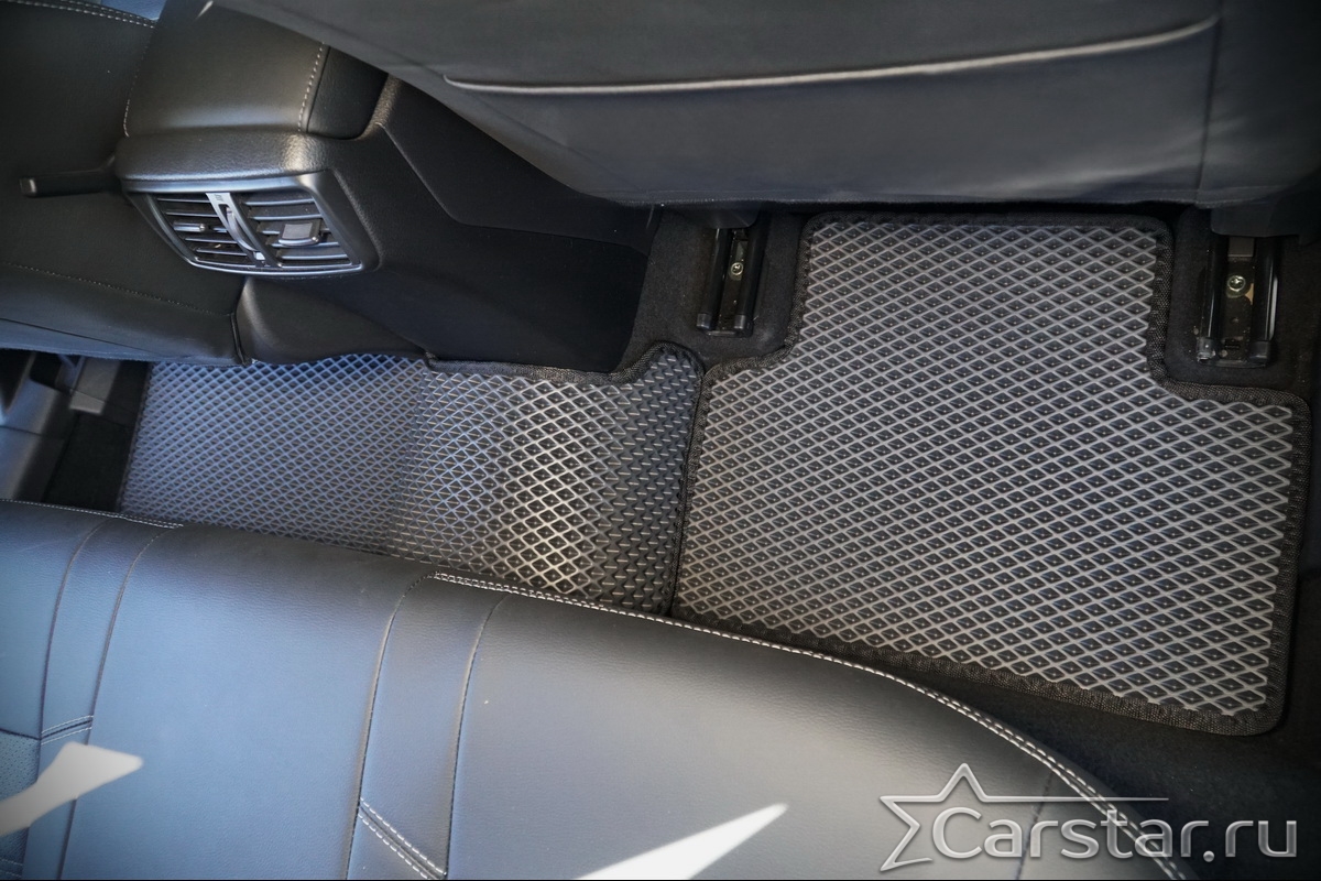 Толщина ковриков EVA составляет 10-12 мм. Глубина ячеек 7-8 мм. Такая толщина ковриков позволяет им служить довольно долго, не протираясь до 3 лет. А благодаря такой глубине ячеек коврик EVA площадью 1 кв.м. способен захватить около 3,5 л жидкости, сохраняя в чистоте вашу обувь и обивку салона.