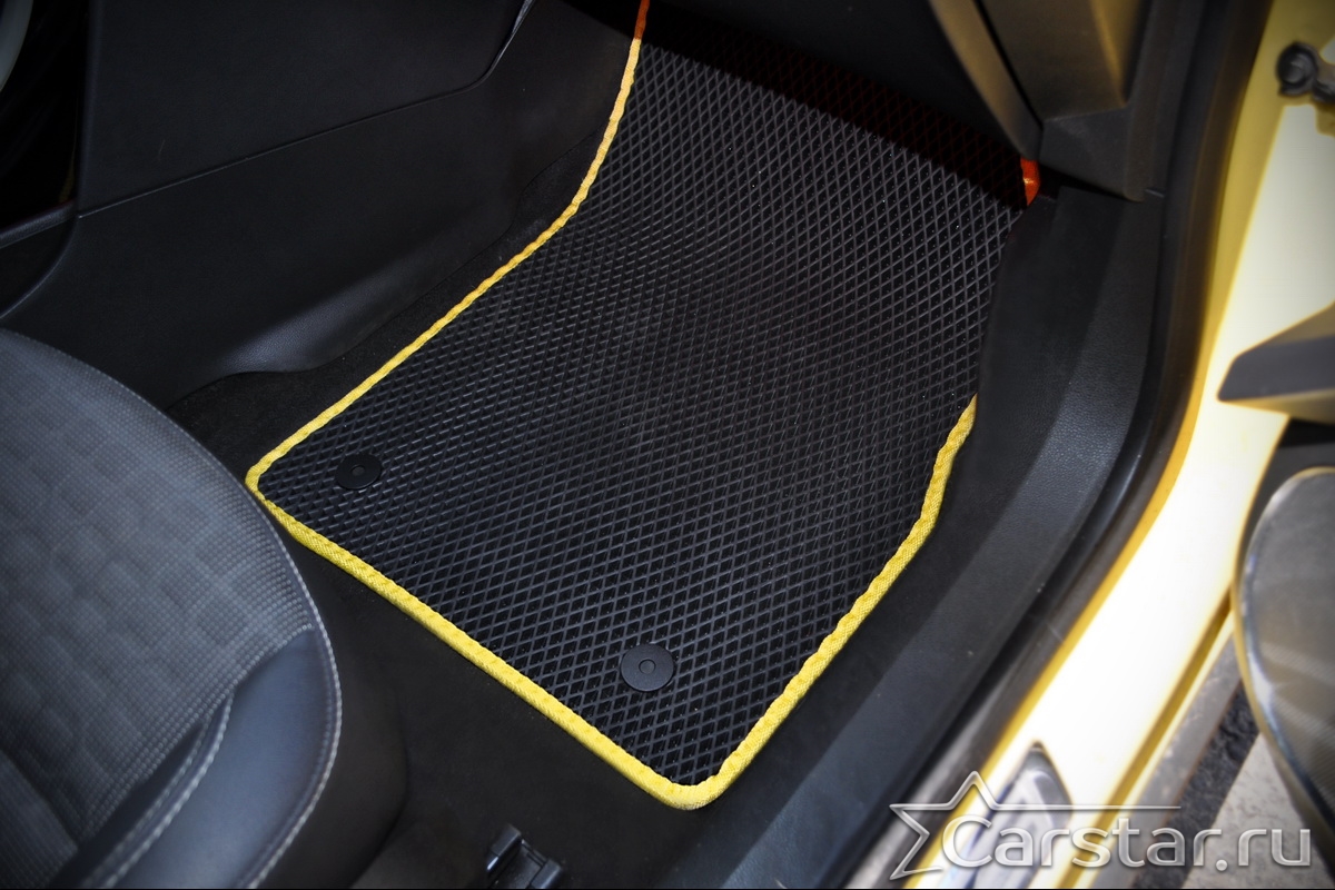 Коврики EVA надёжно крепятся с помощью оригинальных систем фиксации. Благодаря клипсам, а также липучке, коврики защищены от смещений, что обеспечивает комфорт и безопасность вождения. Максимальное удобство также достигается точными, улучшенными лекалами для каждого автомобиля.