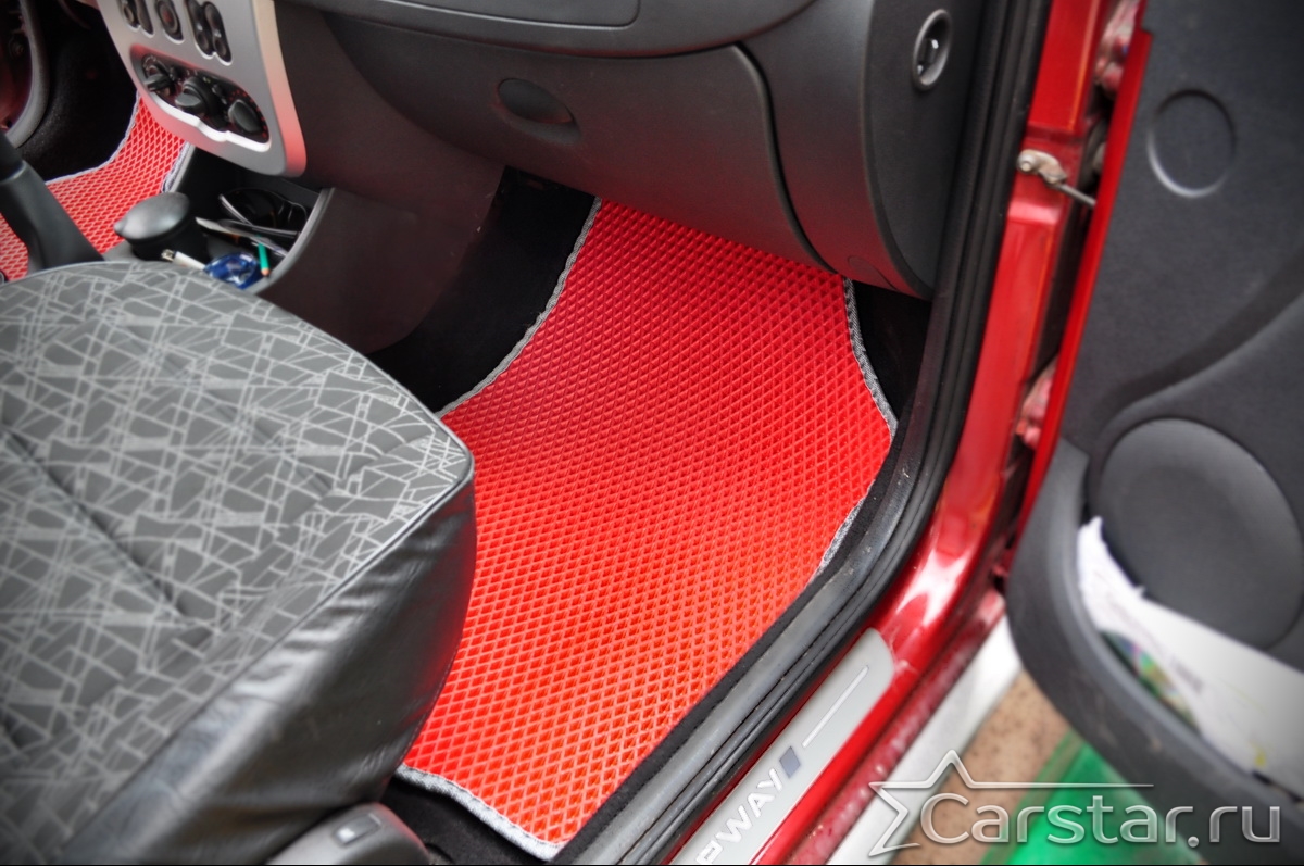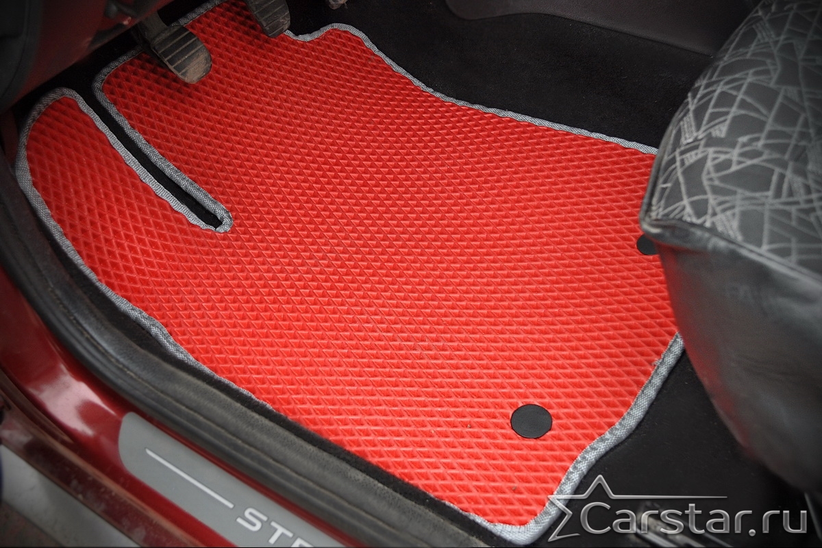 Автомобильные коврики EVA прекрасно подходят для всех существующих марок и моделей авто, здесь вы сможете заказать оптимальный аксессуар любого возможного цвета. По размерам они больше, чем стандартные резиновые коврики, поэтому покрывают максимальную площадь пола в салоне. А двойная система креплений (клипсы и липучки) позволяет надежно зафиксировать коврики в нужном месте.
