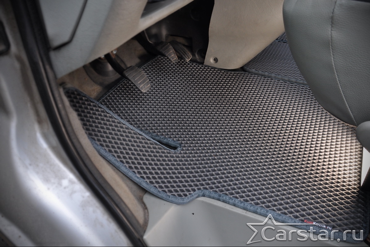 Толщина ковриков EVA составляет 10-12 мм. Глубина ячеек 7-8 мм. Такая толщина ковриков позволяет им служить довольно долго, не протираясь до 3 лет. А благодаря такой глубине ячеек коврик EVA площадью 1 кв.м. способен захватить около 3,5 л жидкости, сохраняя в чистоте вашу обувь и обивку салона.