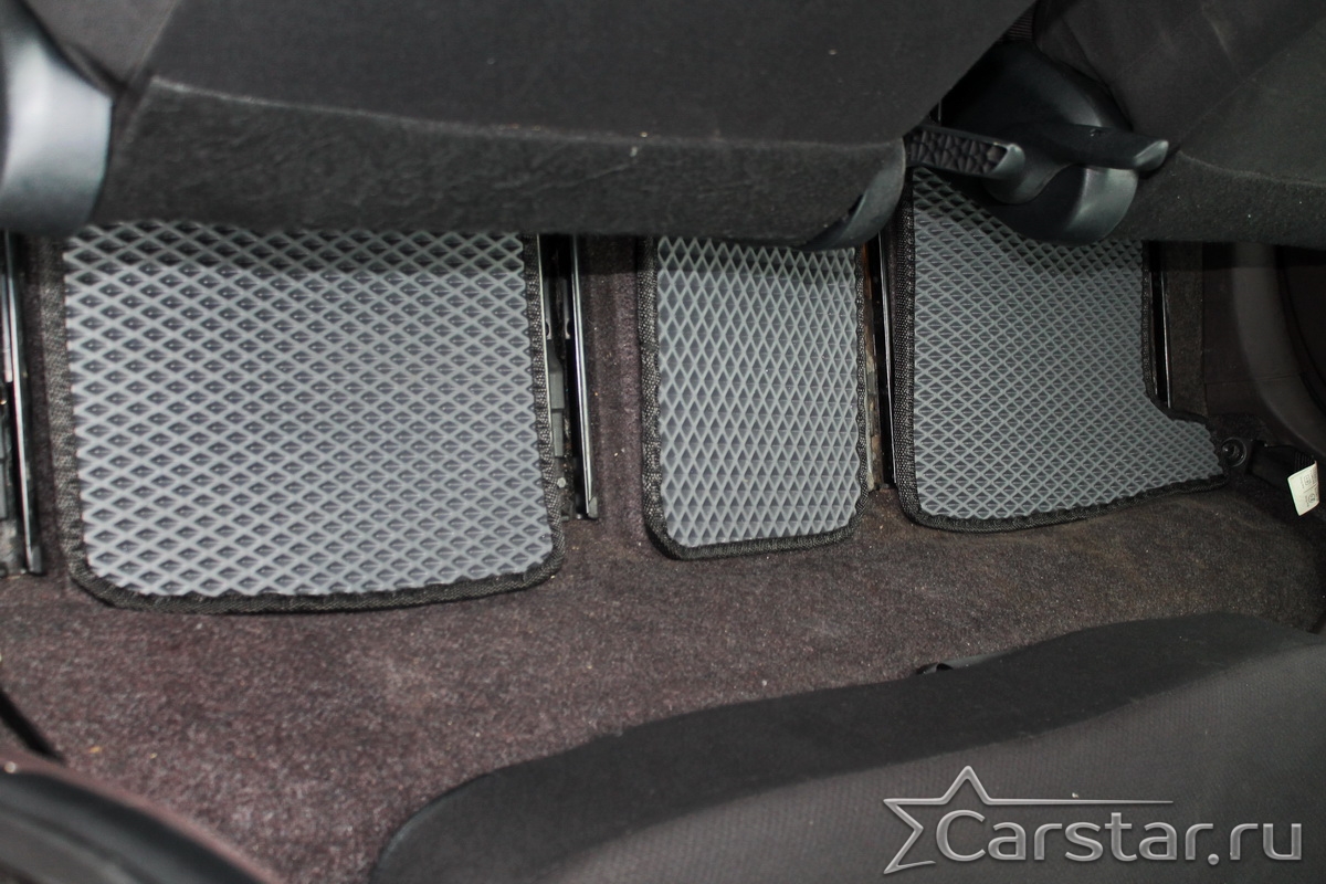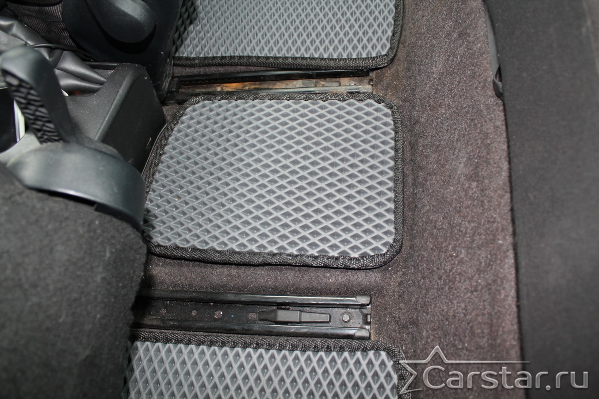 Толщина ковриков EVA составляет 10-12 мм. Глубина ячеек 7-8 мм. Такая толщина ковриков позволяет им служить довольно долго, не протираясь до 3 лет. А благодаря такой глубине ячеек коврик EVA площадью 1 кв.м. способен захватить около 3,5 л жидкости, сохраняя в чистоте вашу обувь и обивку салона.