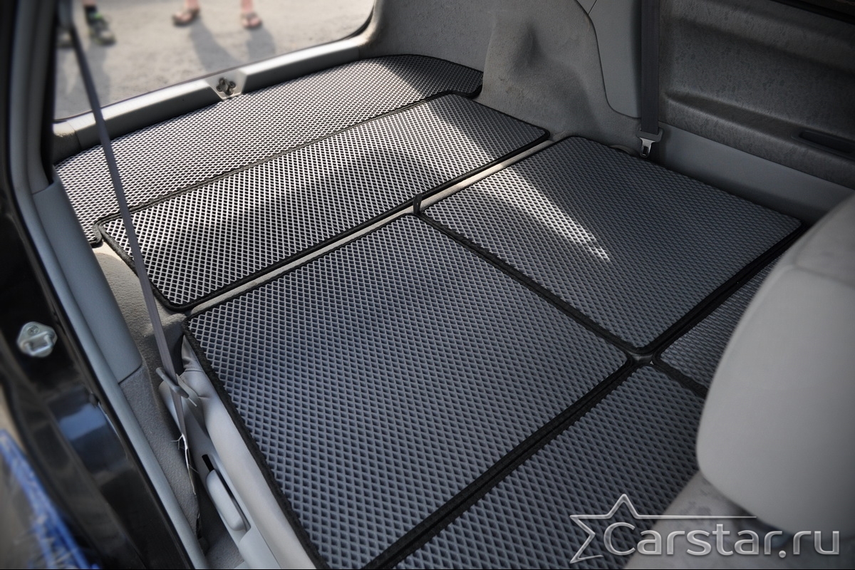 Толщина ковриков EVA составляет 10-12 мм. Глубина ячеек 7-8 мм. Такая толщина ковриков позволяет им служить довольно долго, не протираясь до 3 лет. А благодаря такой глубине ячеек коврик EVA площадью 1 кв.м. способен захватить около 3,5 л жидкости, сохраняя в чистоте вашу обувь и обивку салона.