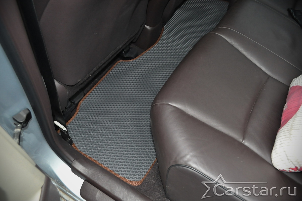 Толщина ковриков EVA составляет 10-12 мм. Глубина ячеек 7-8 мм. Такая толщина ковриков позволяет им служить довольно долго, не протираясь до 3 лет. А благодаря такой глубине ячеек коврик EVA площадью 1 кв.м. способен захватить около 3,5 л жидкости, сохраняя в чистоте вашу обувь и обивку салона.