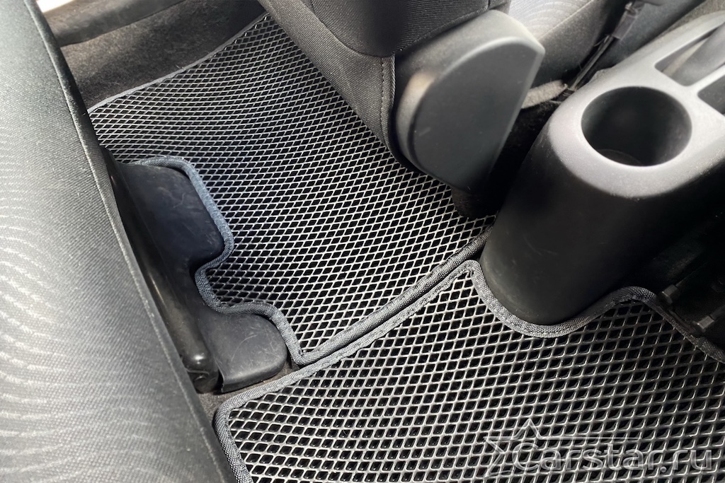 Толщина ковриков EVA составляет 10-12 мм. Глубина ячеек 7-8 мм. Такая толщина ковриков позволяет им служить довольно долго, не протираясь до 3 лет. А благодаря такой глубине ячеек коврик EVA площадью 1 кв.м. способен захватить около 3,5 л жидкости, сохраняя в чистоте вашу обувь и обивку салона.