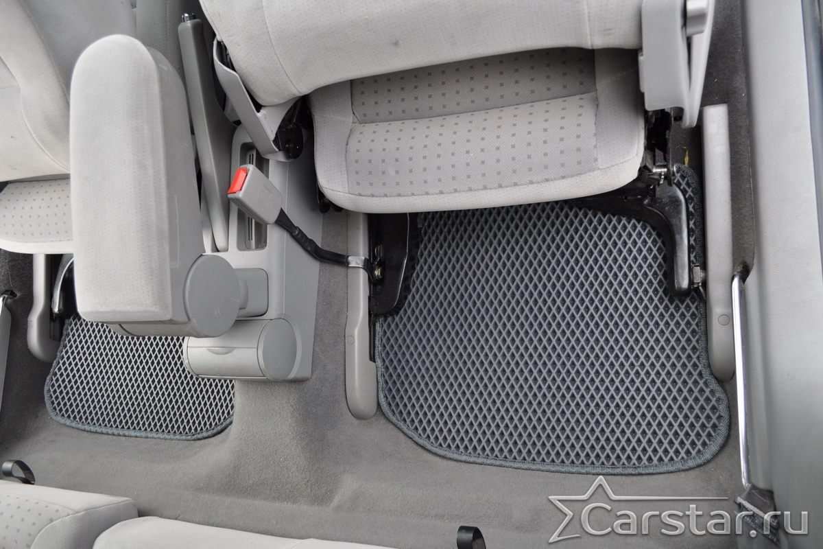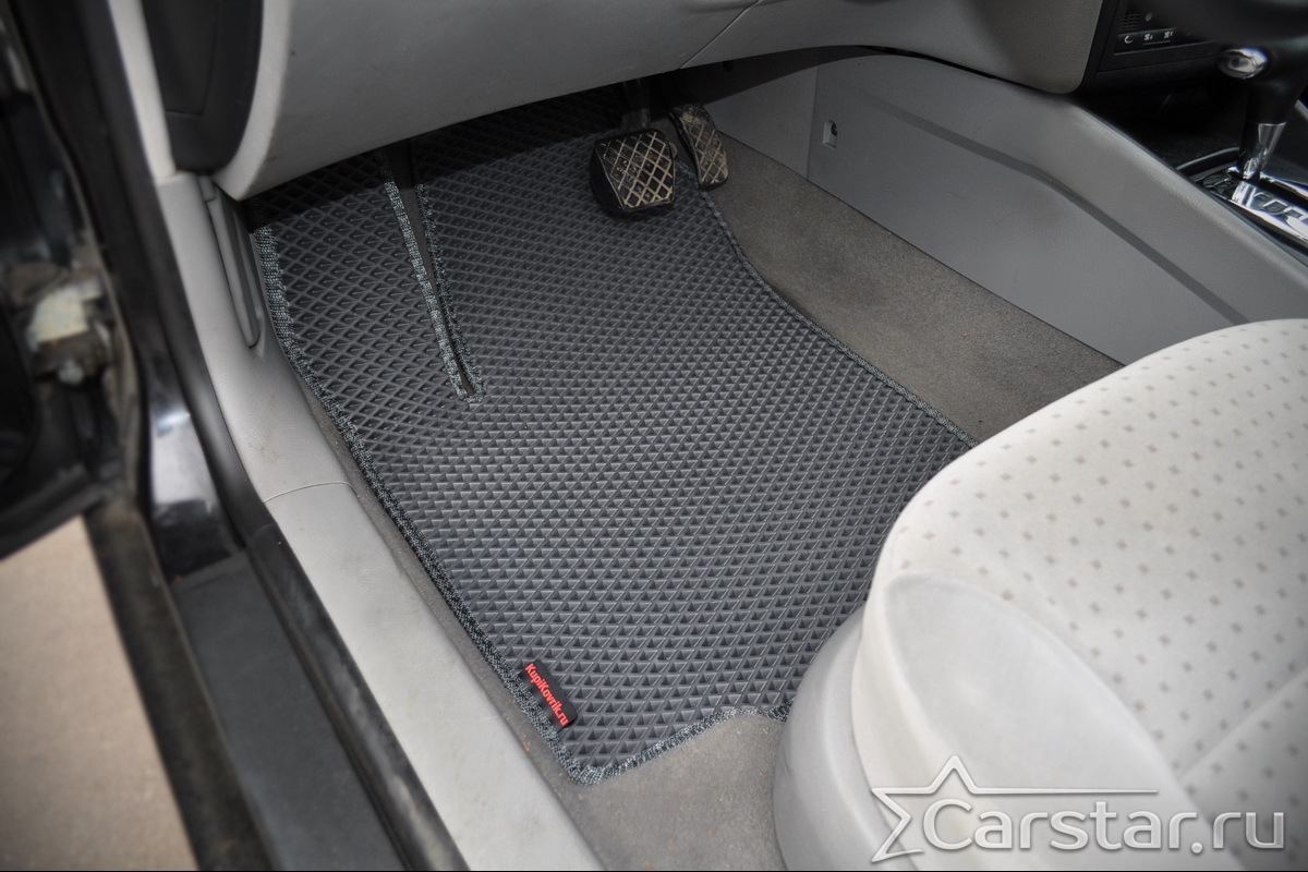 Толщина ковриков EVA составляет 10-12 мм. Глубина ячеек 7-8 мм. Такая толщина ковриков позволяет им служить довольно долго, не протираясь до 3 лет. А благодаря такой глубине ячеек коврик EVA площадью 1 кв.м. способен захватить около 3,5 л жидкости, сохраняя в чистоте вашу обувь и обивку салона.