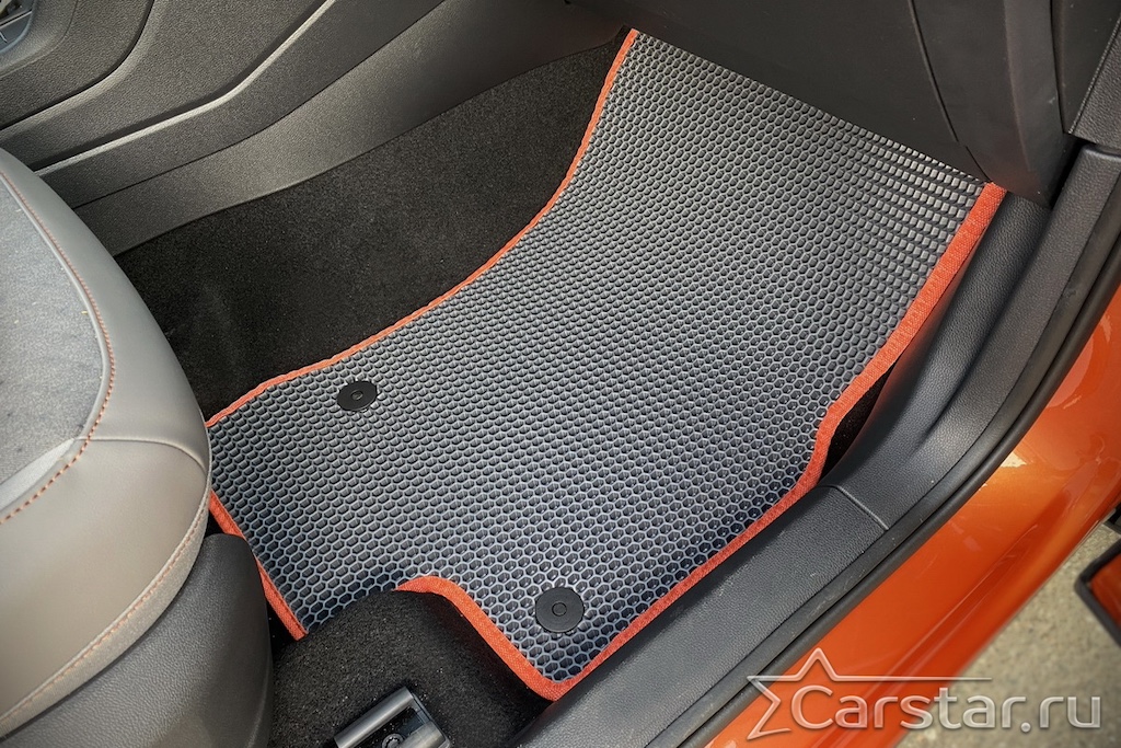 Коврики EVA надёжно крепятся с помощью оригинальных систем фиксации. Благодаря клипсам и липучке коврики защищены от смещений, что обеспечивает комфорт и безопасность вождения. Максимальное удобство также достигается точными, улучшенными лекалами для каждого автомобиля.