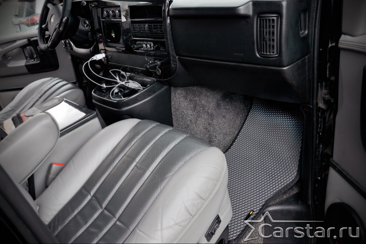 Двухслойные коврики EVA для Chevrolet Express II с консолью (2002->) – это инновационные, долговечные, удобные аксессуары, которые помогут надежно защитить салон и багажник вашего авто от пыли, грязи и влаги в любое время года. Технология двойного слоя - новейшая уникальная разработка от компании Carstar.