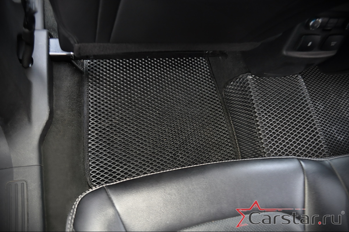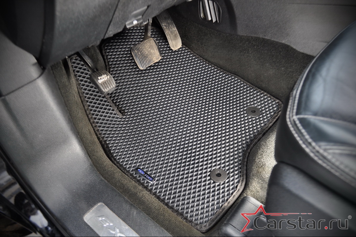 Текстильные коврики надёжно крепятся с помощью оригинальных систем фиксации. Обратная сторона имеет противоскользящее покрытие, что обеспечивает защиту от смещений и безопасность. Максимальное удобство достигается точными лекалами.