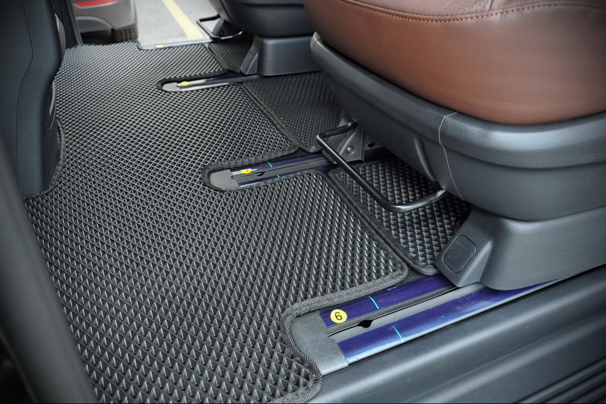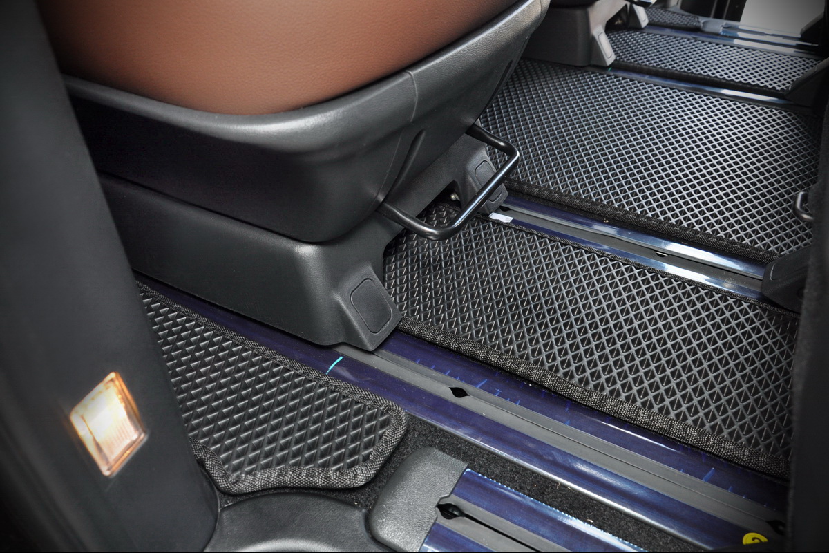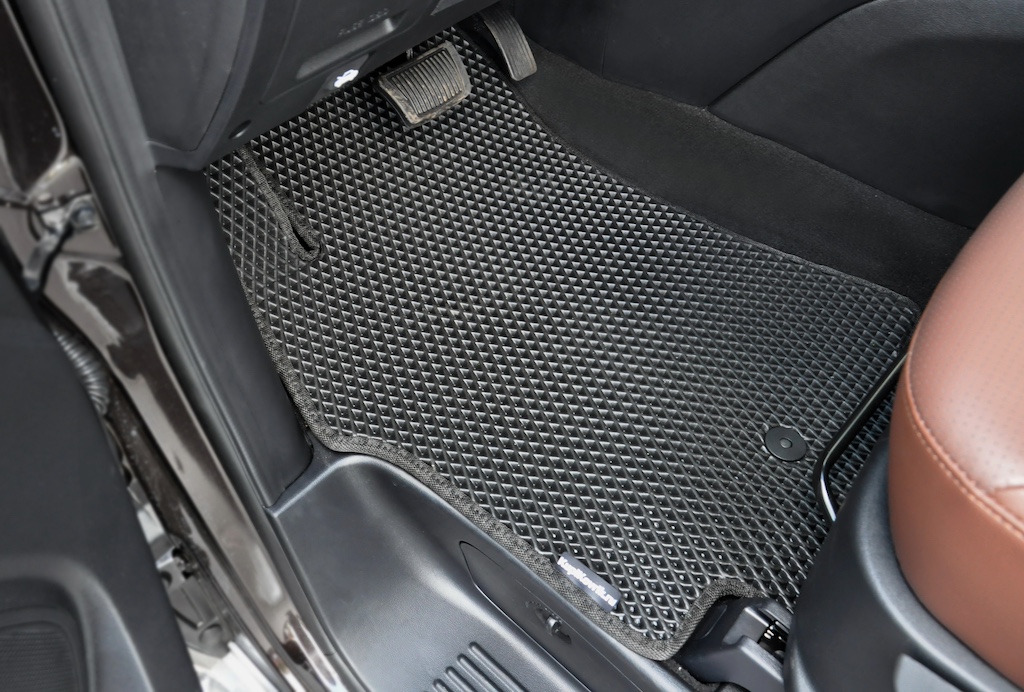Текстильные коврики надёжно крепятся с помощью оригинальных систем фиксации. Обратная сторона имеет противоскользящее покрытие, что обеспечивает защиту от смещений и безопасность. Максимальное удобство достигается точными лекалами.