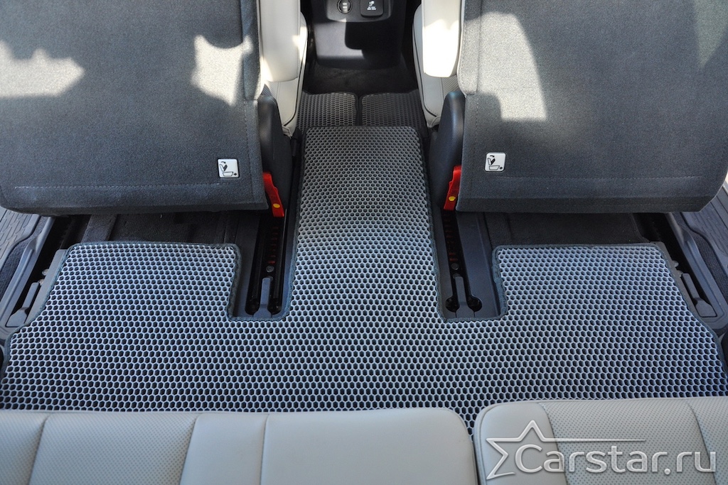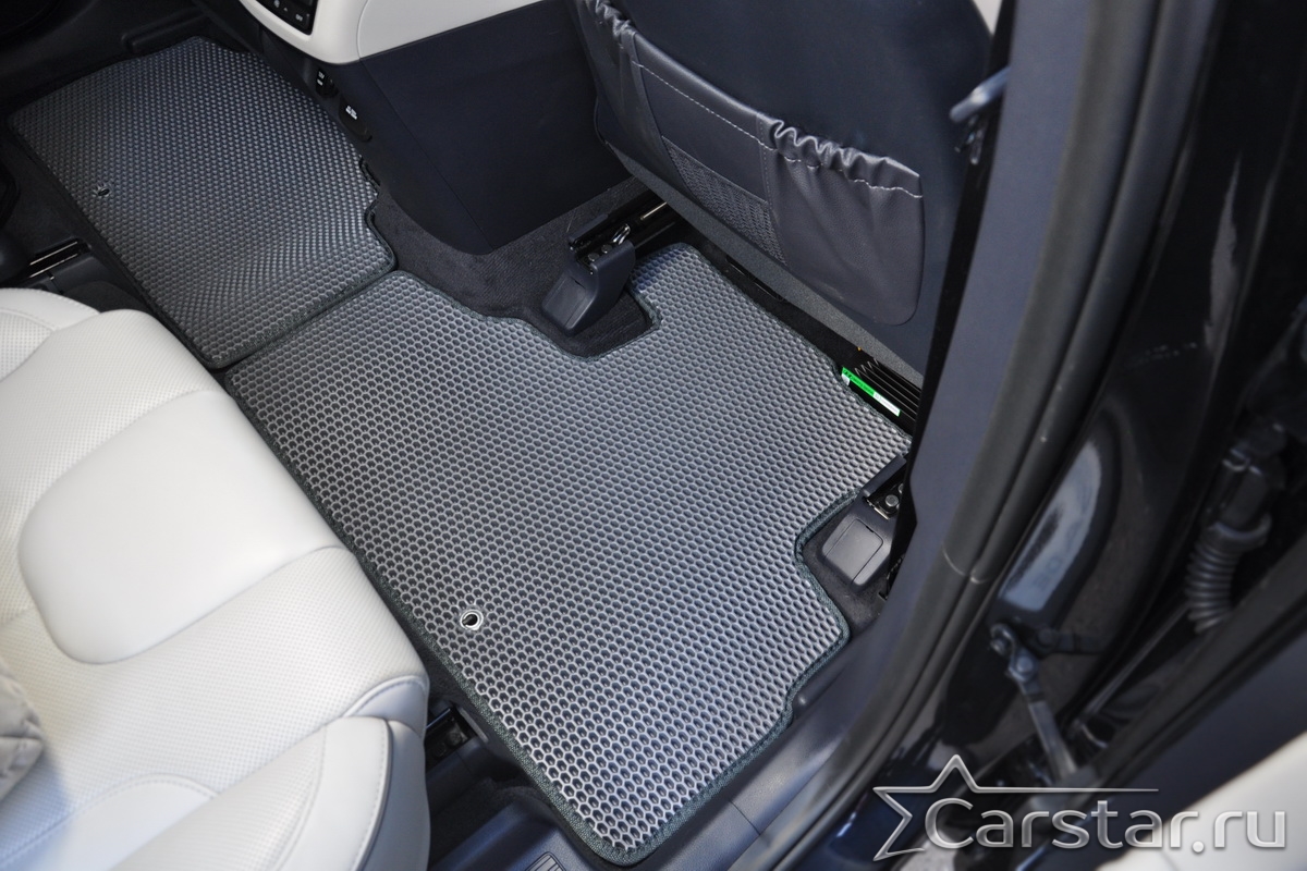 Текстильные коврики надёжно крепятся с помощью оригинальных систем фиксации. Обратная сторона имеет противоскользящее покрытие, что обеспечивает защиту от смещений и безопасность. Максимальное удобство достигается точными лекалами.