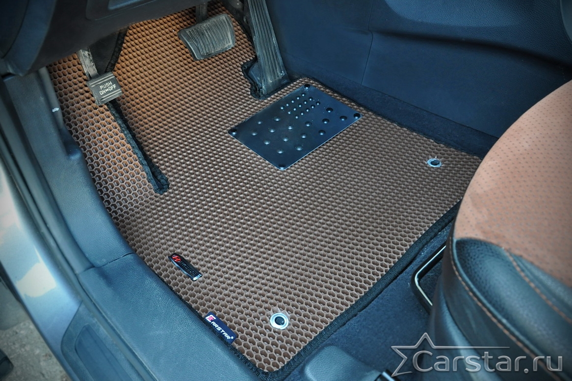 Текстильные коврики надёжно крепятся с помощью оригинальных систем фиксации. Обратная сторона имеет противоскользящее покрытие, что обеспечивает защиту от смещений и безопасность. Максимальное удобство достигается точными лекалами.