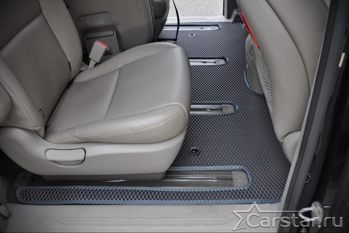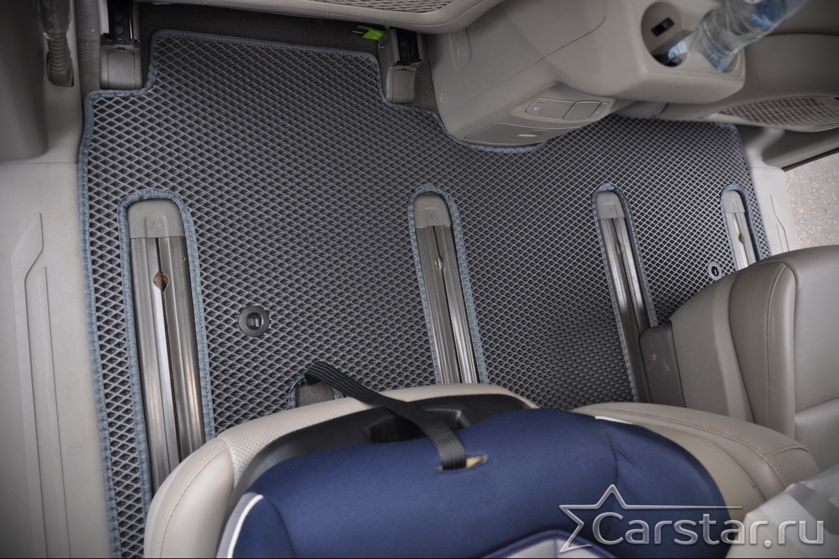 Текстильные автомобильные коврики Kia Carnival III (11мест) 2+2 с трансформерами (2014->) – это классический аксессуар, который обеспечит салону автомобиля неизменную чистоту, порядок и уют. Компания Carstar предлагает изделия из качественного ковролина в сочетании с полипропиленовым основанием на шипах, такая комбинация делает их прочными и водонепроницаемыми.