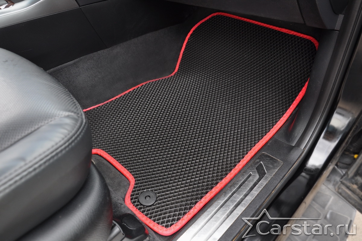 Текстильные коврики надёжно крепятся с помощью оригинальных систем фиксации. Обратная сторона имеет противоскользящее покрытие, что обеспечивает защиту от смещений и безопасность. Максимальное удобство достигается точными лекалами.