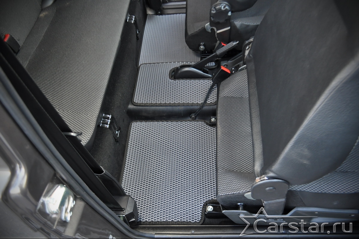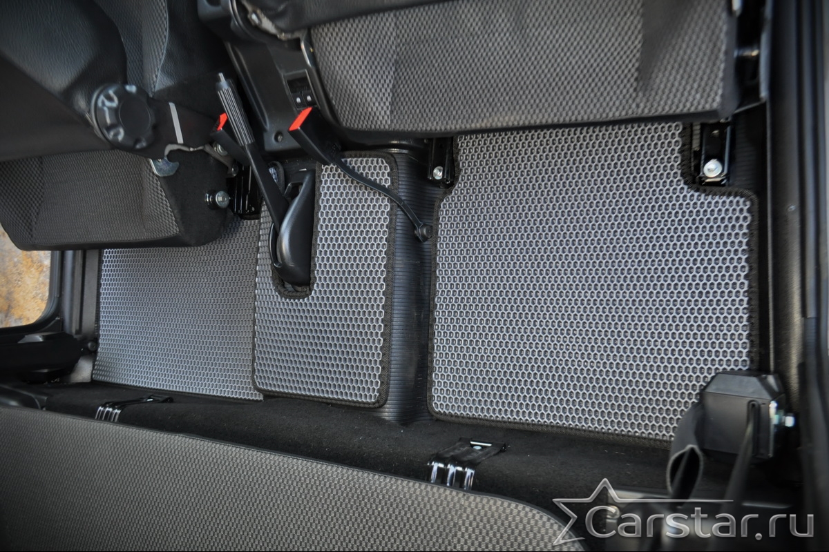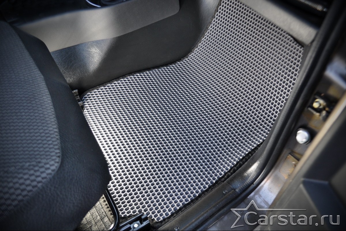 Текстильные коврики надёжно крепятся с помощью оригинальных систем фиксации. Обратная сторона имеет противоскользящее покрытие, что обеспечивает защиту от смещений и безопасность. Максимальное удобство достигается точными лекалами.