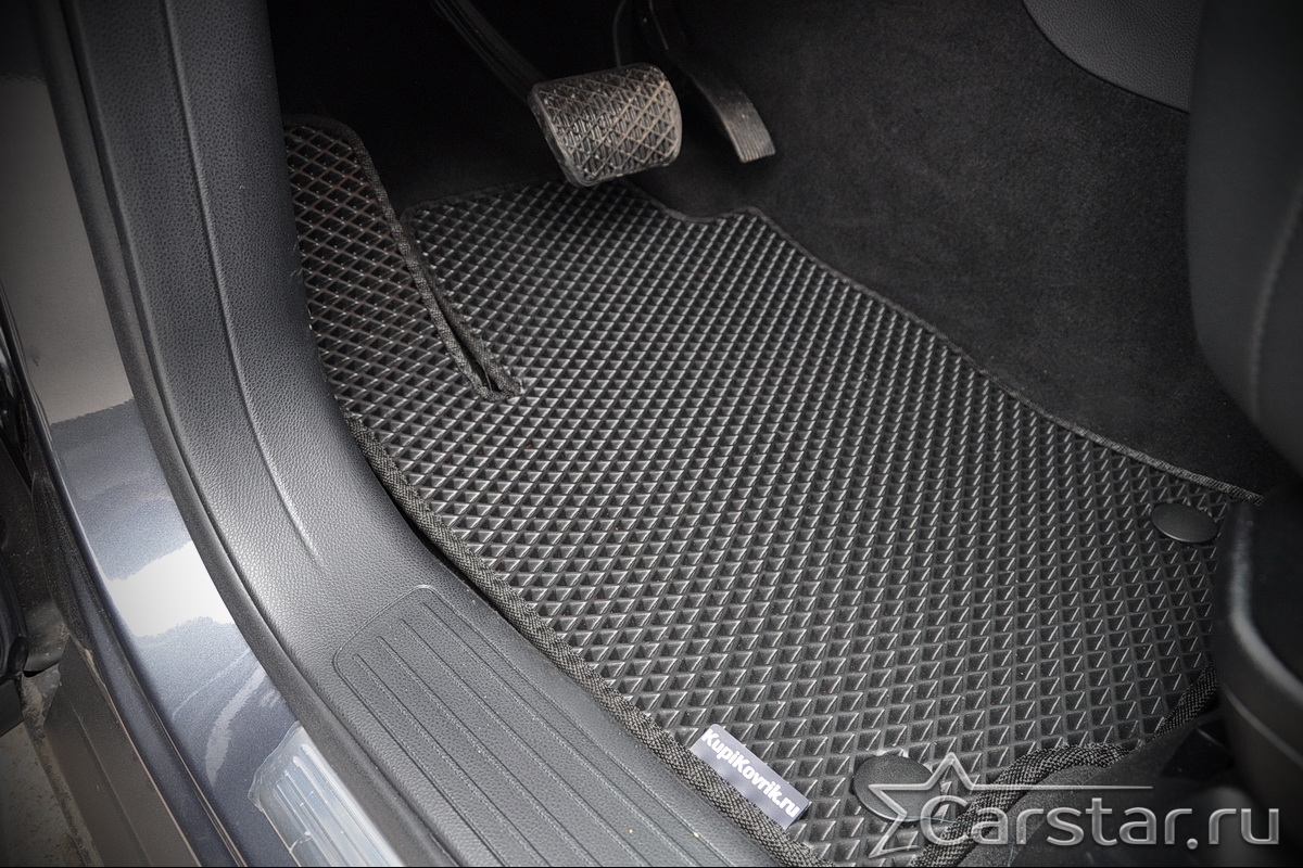 Текстильные коврики надёжно крепятся с помощью оригинальных систем фиксации. Обратная сторона имеет противоскользящее покрытие, что обеспечивает защиту от смещений и безопасность. Максимальное удобство достигается точными лекалами.