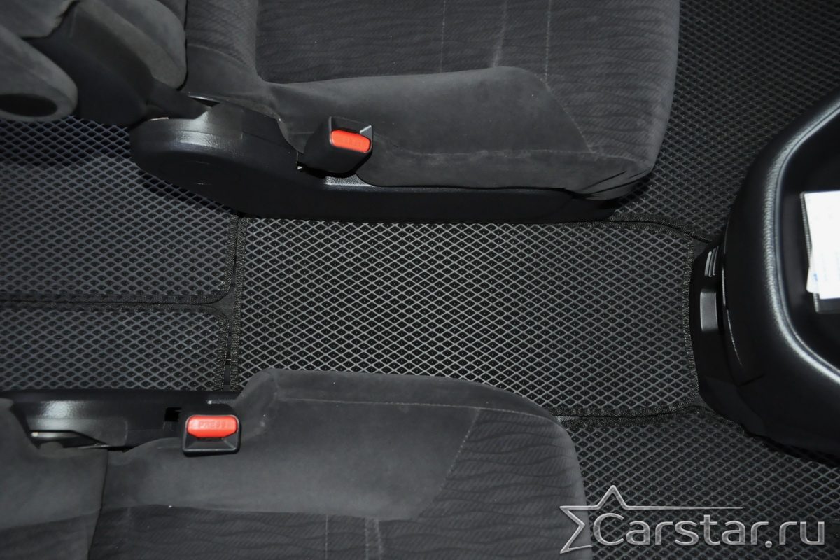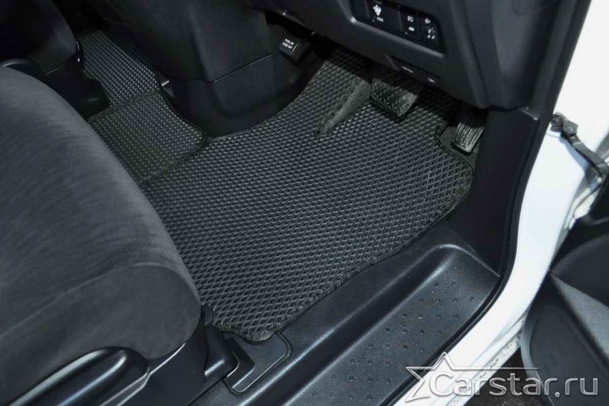 Текстильные коврики надёжно крепятся с помощью оригинальных систем фиксации. Обратная сторона имеет противоскользящее покрытие, что обеспечивает защиту от смещений и безопасность. Максимальное удобство достигается точными лекалами.