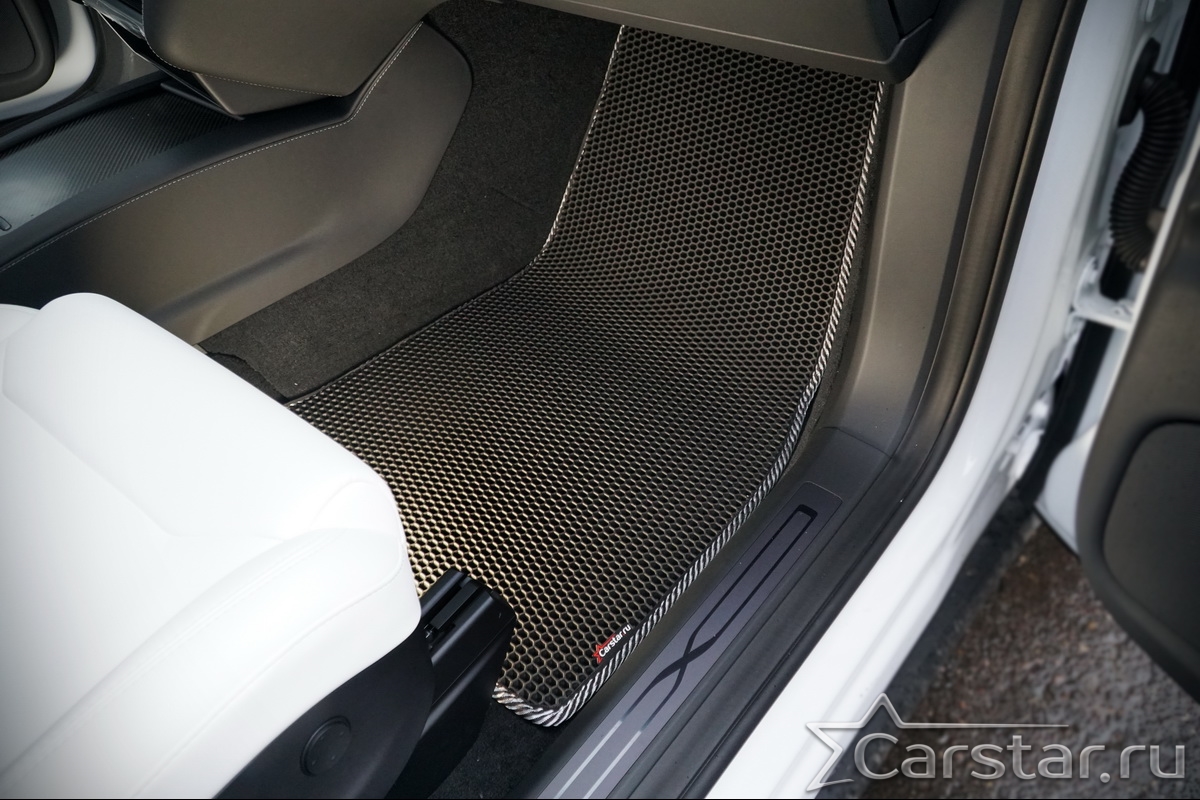 Текстильные коврики надёжно крепятся с помощью оригинальных систем фиксации. Обратная сторона имеет противоскользящее покрытие, что обеспечивает защиту от смещений и безопасность. Максимальное удобство достигается точными лекалами.